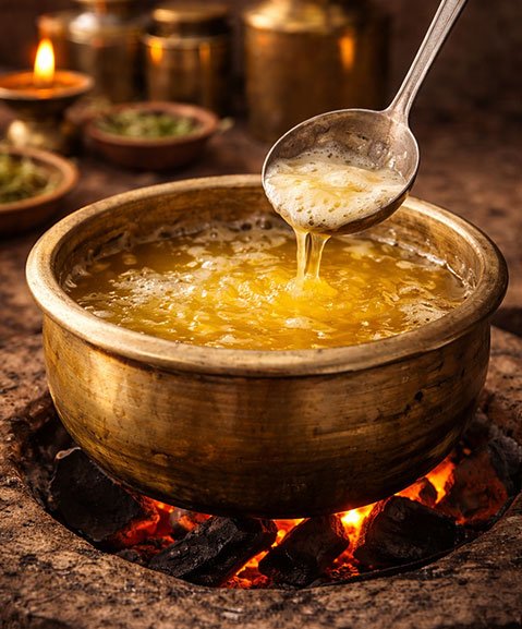 A2 Bilona Ghee is not just clarified butter. It is a slow, deliberate process rooted in Ayurveda — made from curd, not cream, and prepared in small batches to preserve natural balance, aroma, and digestibility.